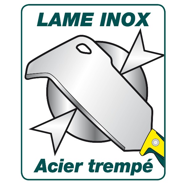 - Lame en acier inoxydable trempée ( 50-55 HRC) : ne rouille pas